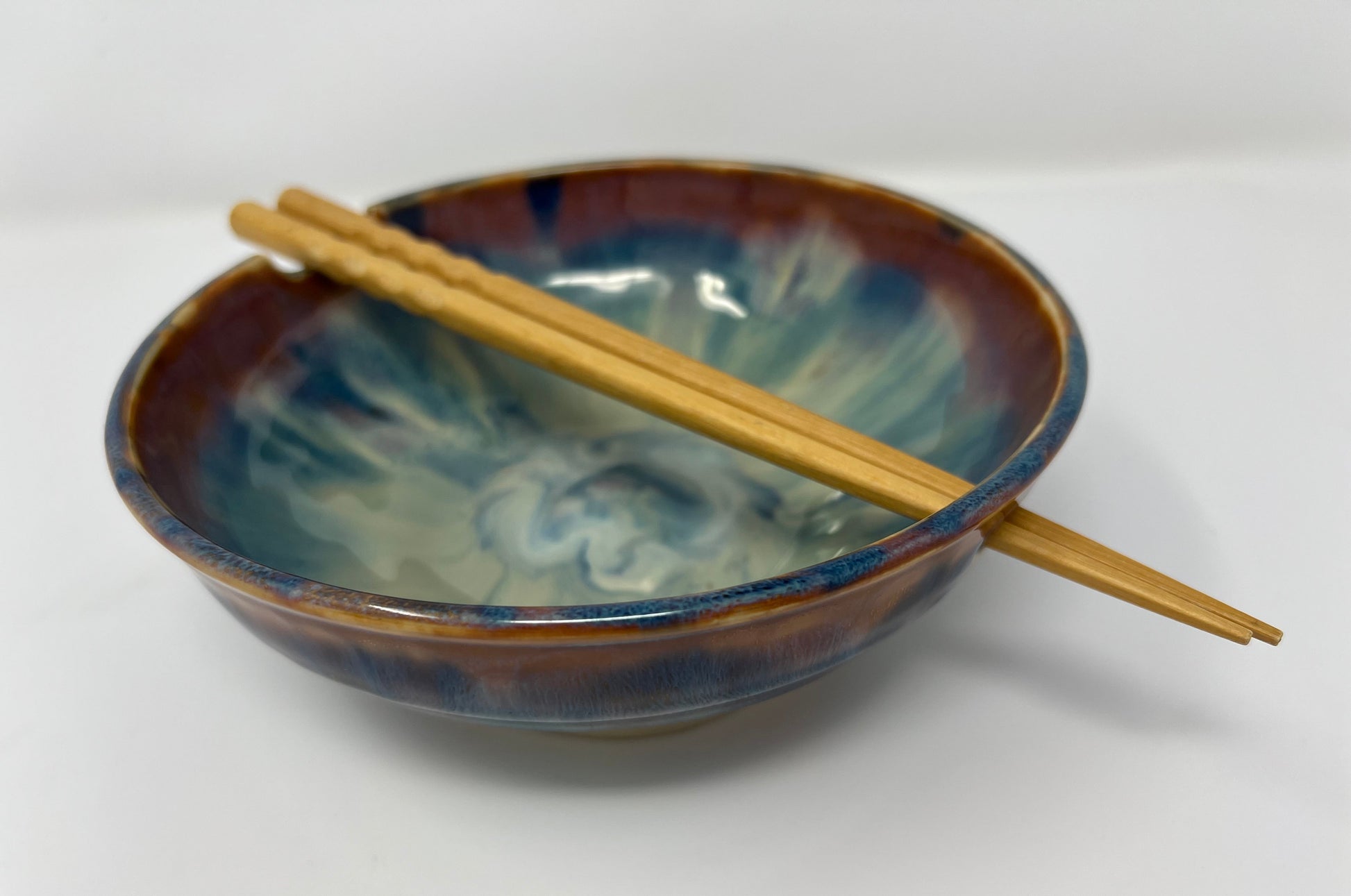Ramen Bowl | Handmade Pottery & Ceramics | Aurora Ember Collection – Swirled Blue & Copper Glaze